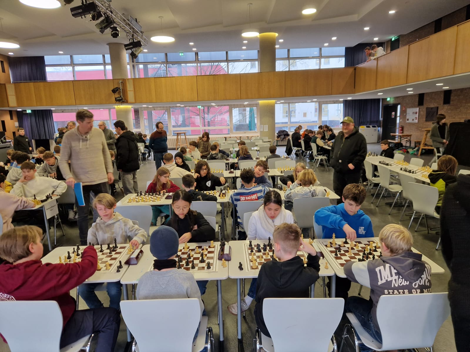 Das Bezirksfinale des Niedersächsischen Schulschachmannschaftswettbewerbs 2025/26 steht in den Büchern. Zum ersten Mal konnten wir in unserer Aula SchülerInnen aus Oldenburg und Umgebung begrüßen, um das königliche Spiel zu spielen. Auch wenn uns das Wetter in der vorhergegangenen Woche einen Strich durch die Rechnung machte, konnten wir den Wettbewerb am 12. Februar 2026 nachholen und damit ein tolles Erlebnis für ca. 130 SchülerInnen ermöglichen. Von Grundschule bis Oberstufe – alle waren dabei und haben gemeinsam Schach gespielt.
